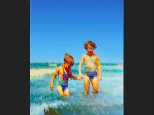 Boven de ramen zijn oude gevelstenen zichtbaar, ieder met hun eigen versleten verhaal in de verweerde lijnen en inscripties. De ramen, met hun houten kozijnen, weerspiegelen geen flard van de blauwe lucht waarin een enkele wolk te zien is. Aan de rand van het doek is het groen van boombladeren zichtbaar, wat het tafereel een levendige, bijna tijdloze sfeer geeft.