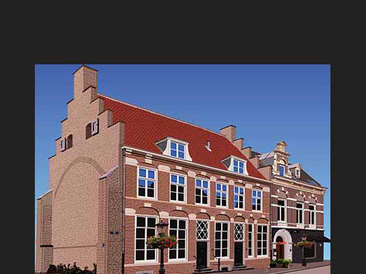 Met zijn combinatie van architectonische precisie, warme sfeer en oosterse invloeden, weet het digitale kunstwerk de toeschouwer mee te nemen naar een plek waar culturen samensmelten en geschiedenis voelbaar aanwezig is.