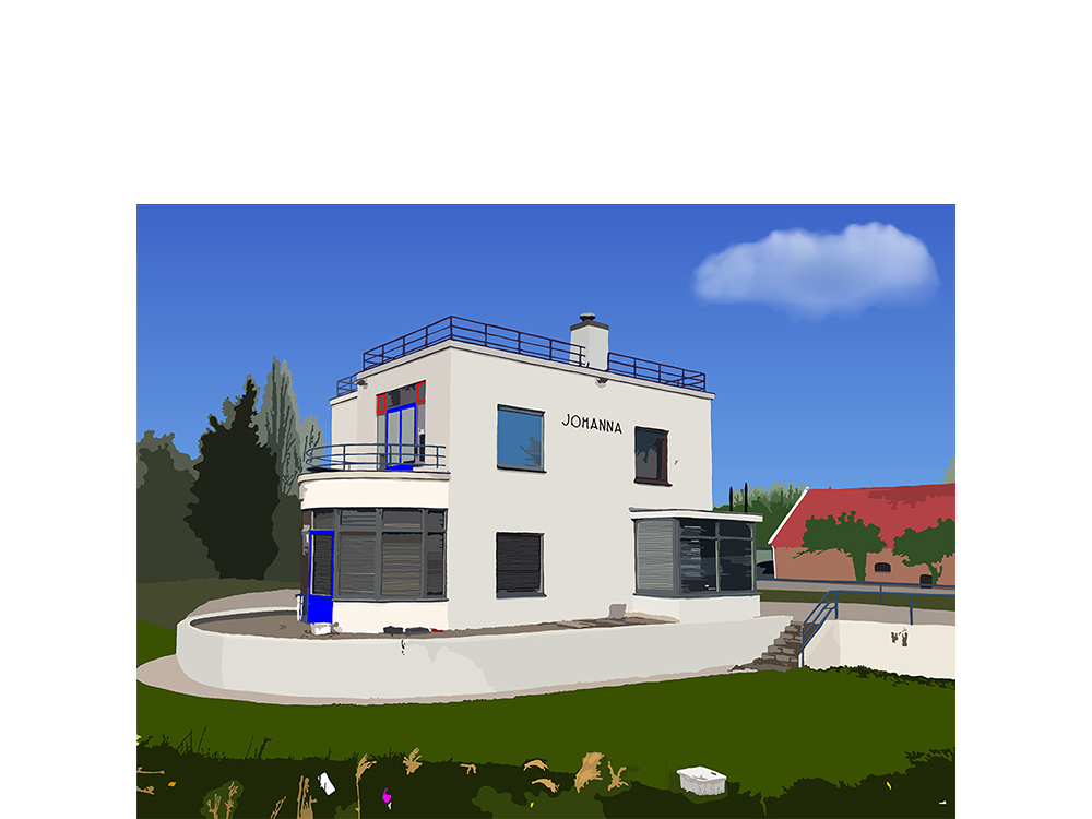 Alle deuren worden omlijst door lichtgekleurde natuurstenen, die met hun ruwe, onregelmatige oppervlak een warme, bijna gouden tint aannemen in de zon. Boven de voordeur is het huisnummer “6” te zien, een eenvoudig wit cijfer op een klassiek blauw emaille bordje, dat zich scherp aftekent tegen het steen. Daarboven strekt de muur zich uit, opgebouwd uit onregelmatige, variabel gekleurde natuurstenen, variërend van zandkleurig tot grijsbruin, met hier en daar plekken die het verstrijken van de tijd verraden.
