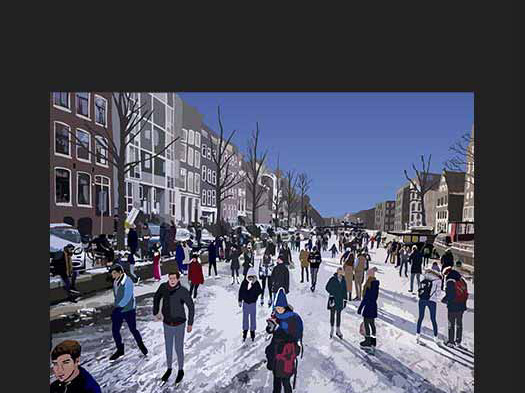 De eenden lijken zich echter niet te bekommeren om de taalacrobatiek die boven hen zweeft. Hun tred is gelijkmatig, bijna mechanisch, alsof ze een geheimzinnig ritme volgen dat de mens ontgaat. In hun stilzwijgende optocht resoneren vragen over richting en ontsnapping. Want naast hen wijst een felrode pijl naar “WAY OUT”: de belofte van een uitweg die altijd naar links wijst, maar nooit concreet zichtbaar wordt.