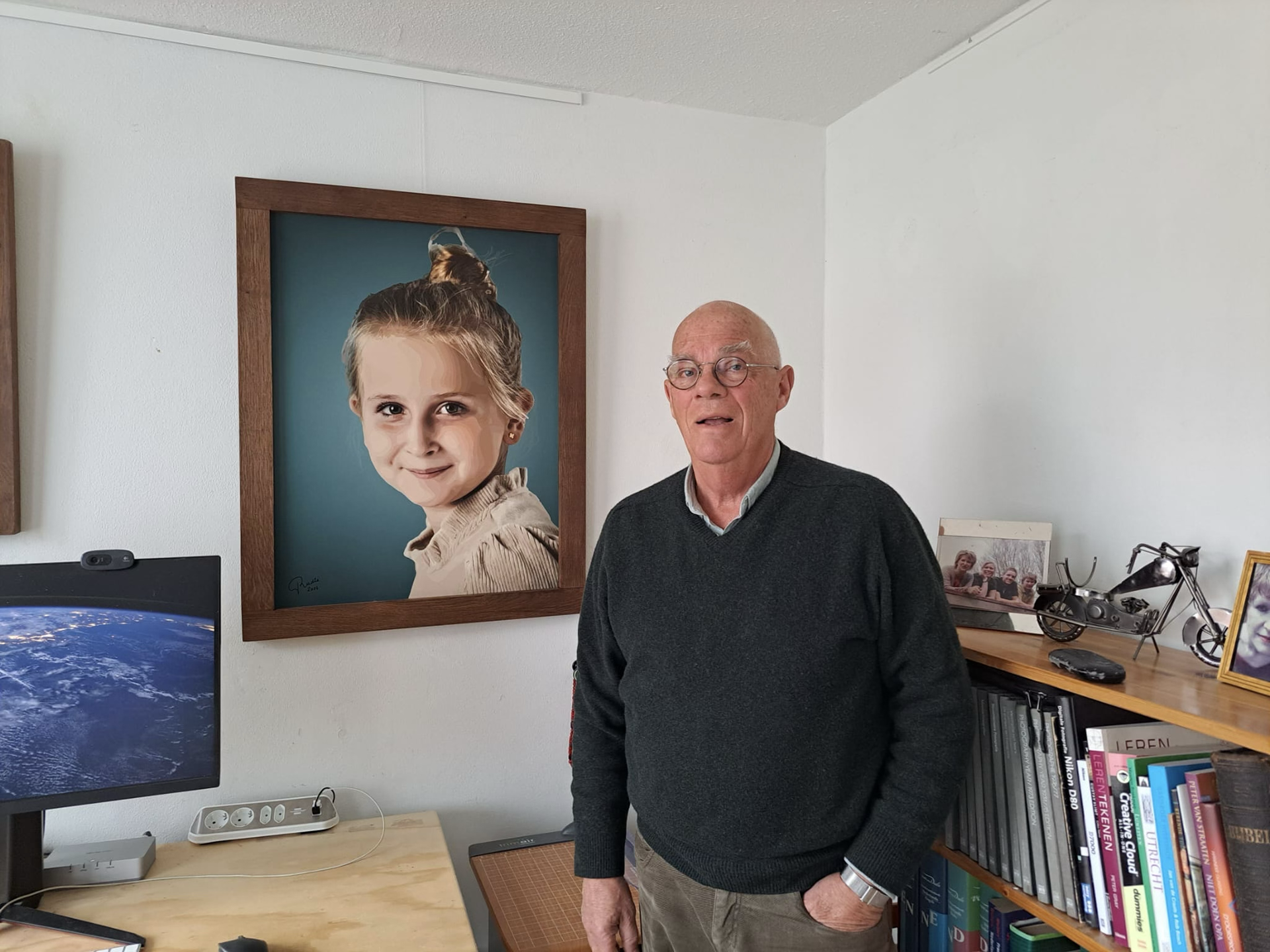 Ruud samen met een zelfgemaakt portret van kleindochter Saar