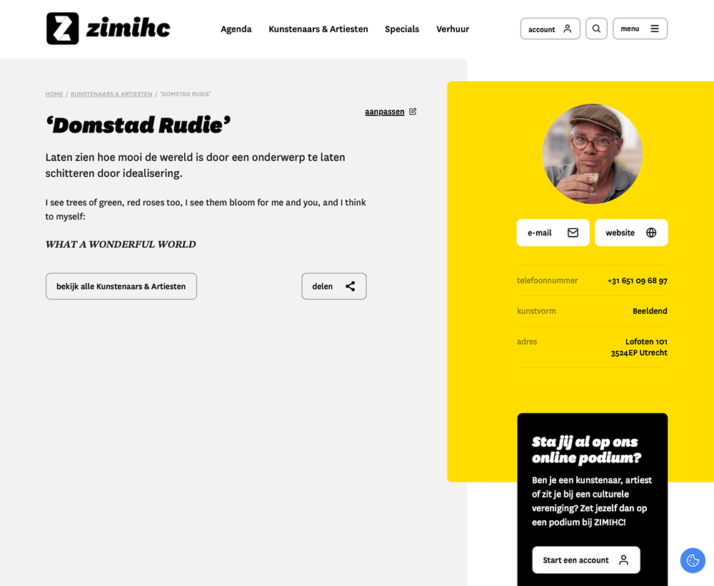 Op ZIMIHC - spreek uit zimmik, dé plek voor Utrechtse amateurs - sta ik vermeld onder "Kunstenaars en artiesten".